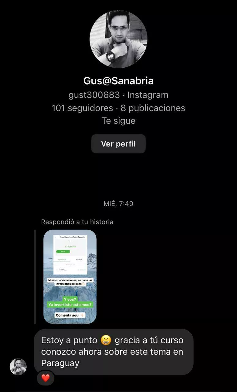 Entonces el Aprendió conmigo como Invertir en la Bolsa de Valores, y ahora ya está ganando más de 140.863 Gs. de Renta Pasiva de sus inversiones en la Bolsa de Valores.