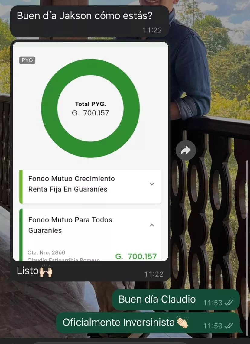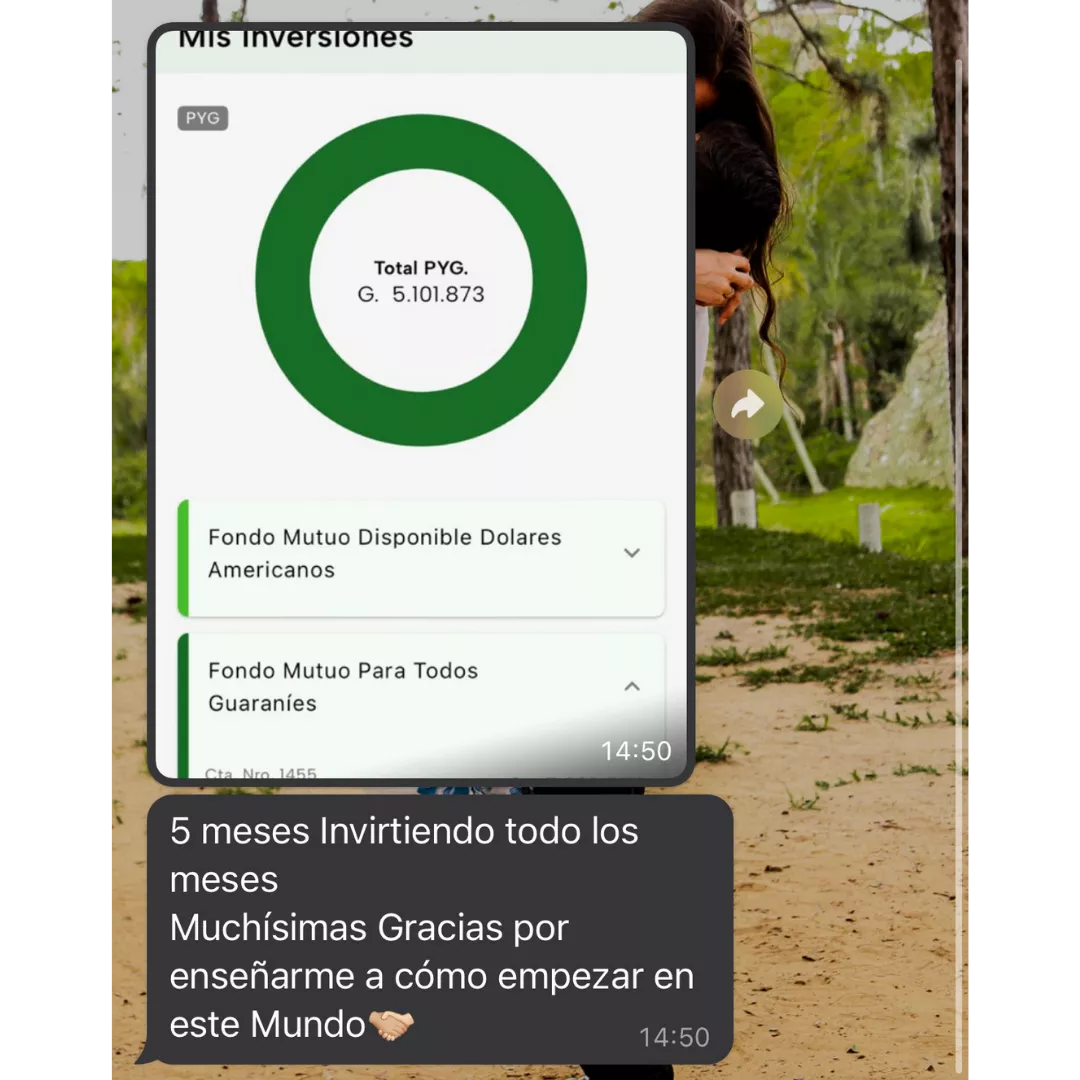 Desde 2020 vengo invirtiendo en la Bolsa de Valores y ganando más de 3.000.000 Gs al mes de Renta Pasiva y desde 2022 ya ayudé a más de 300 personas a empezar a Invertir su Dinero por Cuenta Propia en la Bolsa de Valores.